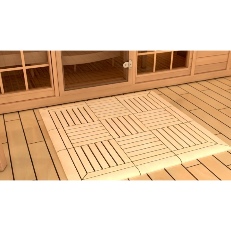 Un covoraș de saună de la Sawo este un accesoriu care va face baia de aburi și vestiarul dumneavoastră și va îmbunătăți siguranța. Covorașul minimizează riscul de alunecare și accidentare în saună. Materialul principal utilizat în covorașe este lemnul. Contactul direct cu pielea picioarelor are un efect benefic asupra sănătății dumneavoastră. În plus, atunci când selectează lemnul pentru covorașele sale de saună, Sawo acordă prioritate lemnului cu proprietăți antibacteriene, ceea ce previne dezvoltarea și creșterea infecțiilor și a ciupercilor în saună.