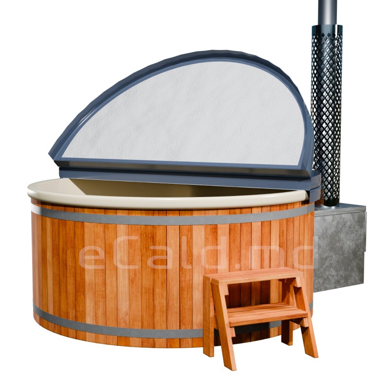 Ciubar din fibra de sticla "COMFORT FAMILY AERO 200" diametru: 2m Dotari standard: - Soba exterioara 30kw ,cos de fum - Lambrisata cu lambriu termic - Scara de acces din lemn 2 trepte - Capacitate 6 persoane - Volum 1500 L - Timp de incalzire 8 - 40C 1,5-2 ore cu soba incorporata pe lemne - Diametrul extern 2 m - Diametru intern 1.8m - Inaltime 1 m - Greutate 180kg - Sistem AeroMasaj 12 duze 1100w - Iluminare led (RGB) 12 buc, 7 culori - Izolatie cu spuma poliuretanica - Capac ilozolat *Nu se recomanda folosirea apei sarate