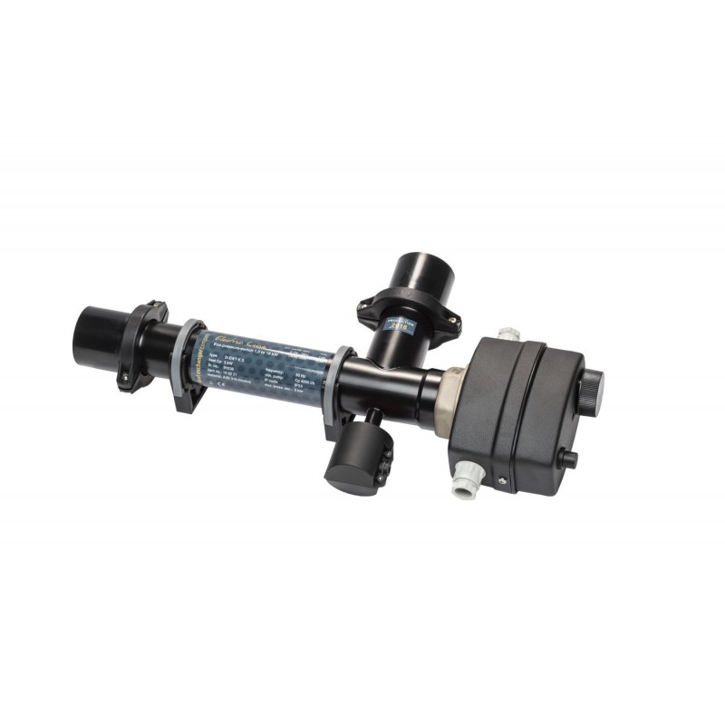 Încălzitorul electric Max Daprà D-EWT-EV 3 cu senzor de debit este conceput pentru a încălzi apa și a menține o temperatură setată într-o piscină. Corpul încălzitorului este fabricat din oțel inoxidabil AISI-316 rezistent la acizi, iar elementele de încălzire sunt fabricate din aliaj Incoloy 825. Încălzitorul este echipat cu un termostat unipolar pentru reglarea temperaturii apei de la 0 la 40°C și un senzor de protecție la supraîncălzire (55°C). Panoul din spate dispune de un regulator de temperatură, un buton de resetare a siguranței termice, un indicator de alimentare și o conexiune la alimentare. Un senzor de debit asigură funcționarea în siguranță a sistemului chiar și cu un debit insuficient de apă. Conexiunea la apă utilizează un insert cu diametrul de 50 mm, iar senzorul de debit poate fi conectat la intrarea sau ieșirea apei.