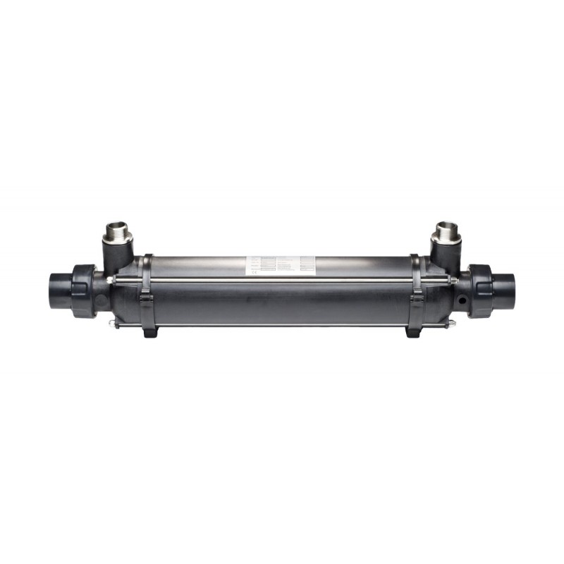Schimbătorul de căldură spiralat Maxdapra D-KWT-Ti 85 kW, într-o carcasă de plastic, este conceput pentru sistemele de încălzire a apei și menținerea unei temperaturi setate în piscine, utilizând boilere, colectoare solare și pompe de căldură. Schimbătorul de căldură este de tip spiralat. Carcasa este fabricată din plastic. Elementul de încălzire este din titan. Fabricat în Italia. Acest tip de schimbător de căldură asigură o eficiență energetică maximă cu o pierdere minimă de presiune în sistem.