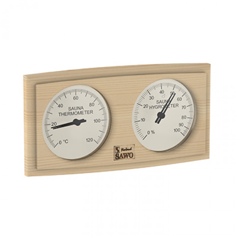 Термогигрометр 271-THP от компании Sawo имеет классическую прямоугольную форму со скруглёнными углами. В широкой рамке из древесины кедра находится два круглых окошка. Под стеклом каждого окошка расположен графичный циферблат. Один из них - это гигрометр, который с точностью измерит уровень влажности в парной, другой - термометр, который сообщит о температуре воздуха. Данный прибор прекрасно подойдёт для использования в любом парильном помещении. В нашем интернет-магазине представлен широкий ассортимент измерительных приборов в корпусах из разных видов древесины. Вы можете купить по привлекательной цене модель 271-THP или присмотреться к другим вариантам.