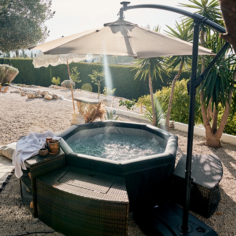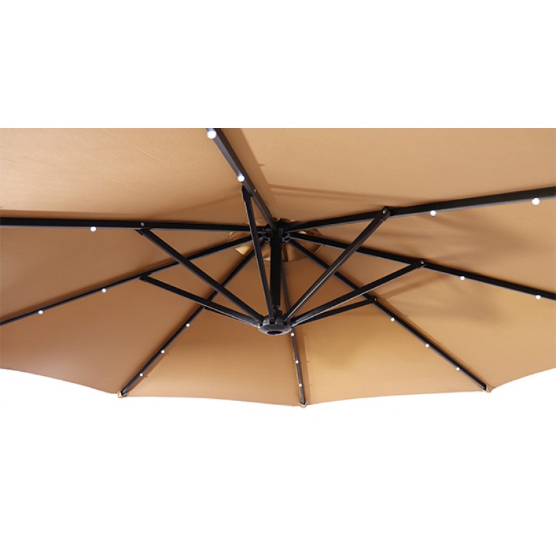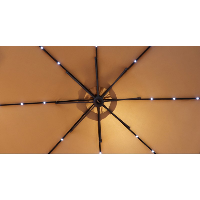 Clasica și eleganta umbrelă NetSpa vă va proteja de razele soarelui în timpul zilei și va crea o atmosferă vibrantă noaptea datorită luminilor LED integrate inteligent, alimentate de un panou solar.